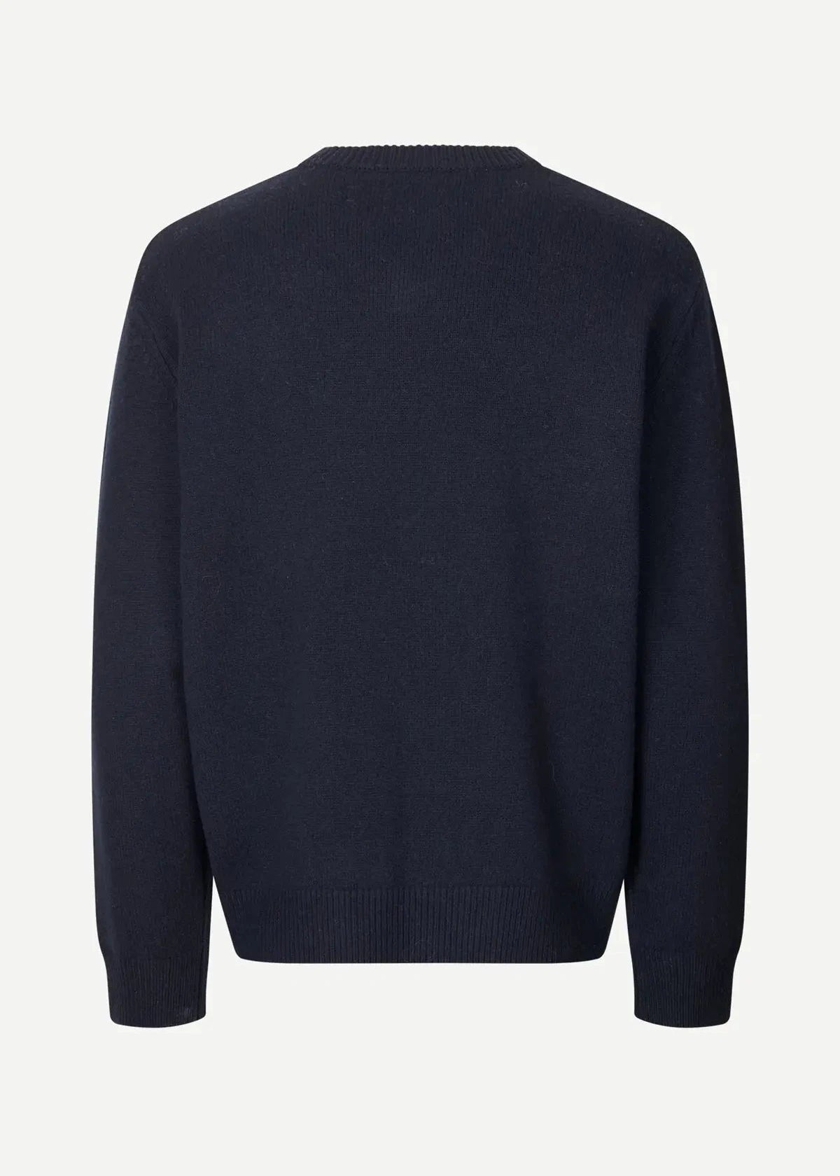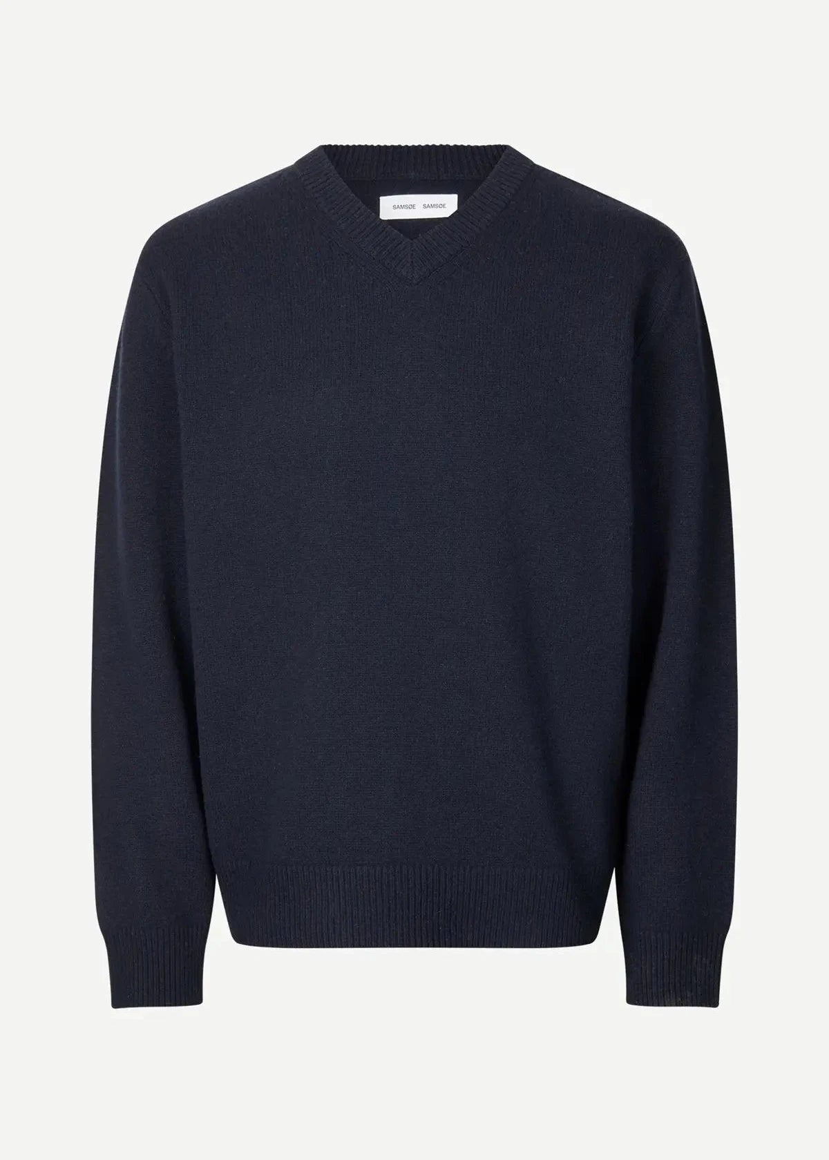 Sweater with a loose fit and dropped shoulders. Rib-knitted collar, cuffs, and hem. V-neck. Main material made from 100% wool from the merino sheep.