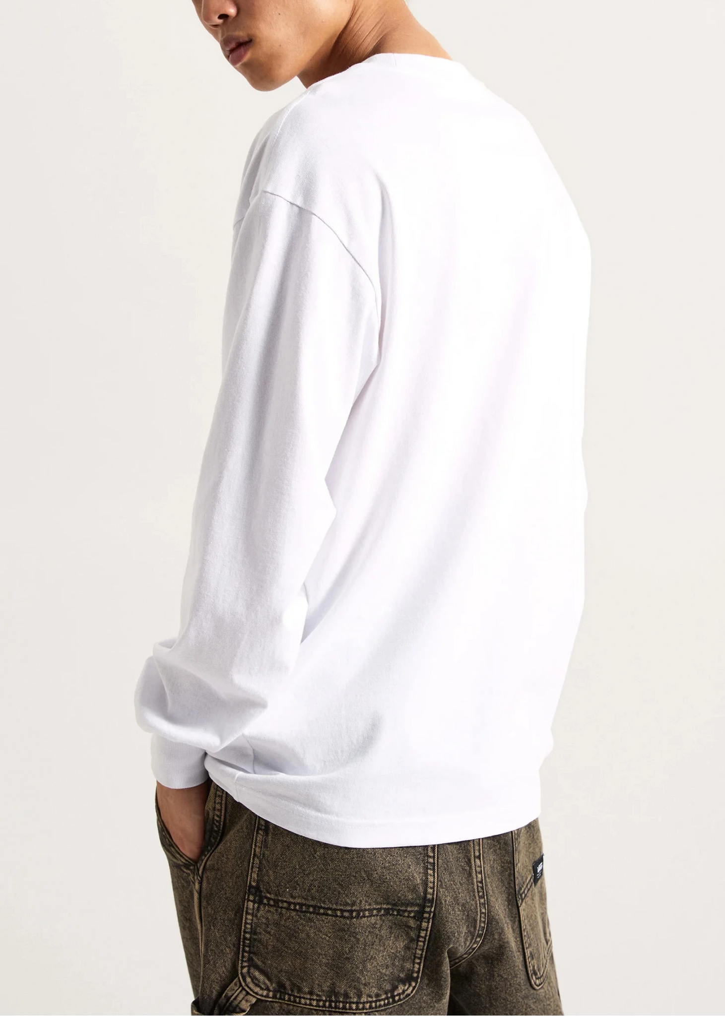 The Salton Long Sleeve T-Shirt offers ultimate comfort and laidback vibes with its loose fit. The design features a crew neck, long sleeves with ribbed cuffs, a ribbed neckline, and an embroidered skateboard logo on the left chest, a subtle nod to the skating heritage that has defined our history as a brand.