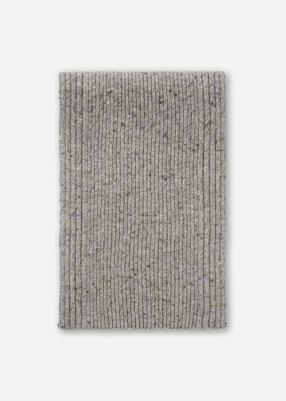 Rib-knitted scarf. Main material made from a blend including wool and recycled wool. Made in Italy.
