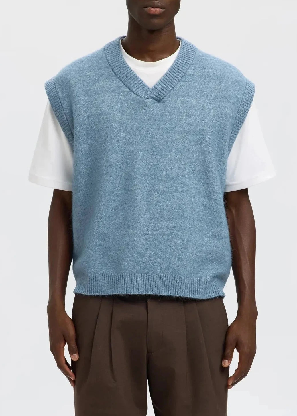 SLHRAI SL KNIT V-NECK RELAXED WAISTCOAT | BLUE MIRAGE MELANGEE SELECTED