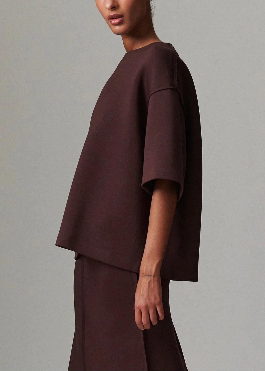 This scuba-texturedT-shirt features raised seams and a rounded neckline. The T-shirt has a loose fit.