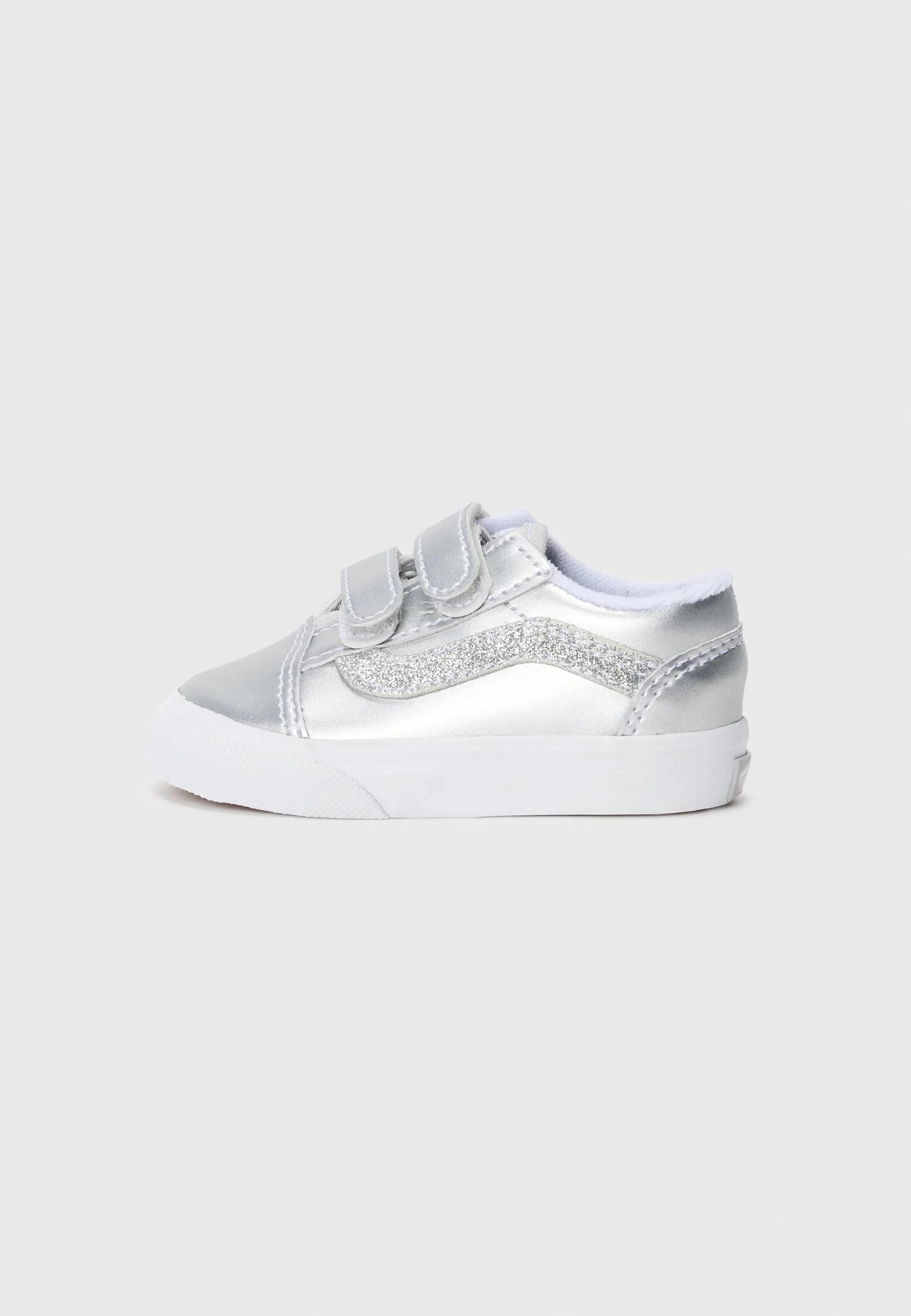 Cushioned footbed with soft textile lining These mini versions of our iconic Old Skool sneakers bring classic style to tiny feet. The combination of durable materials and easy-fastening straps makes them perfect for active toddlers, while the timeless design looks great with everything from playground basics to special occasion outfits. The vulcanized construction and signature waffle sole provide the stability and grip growing feet need.