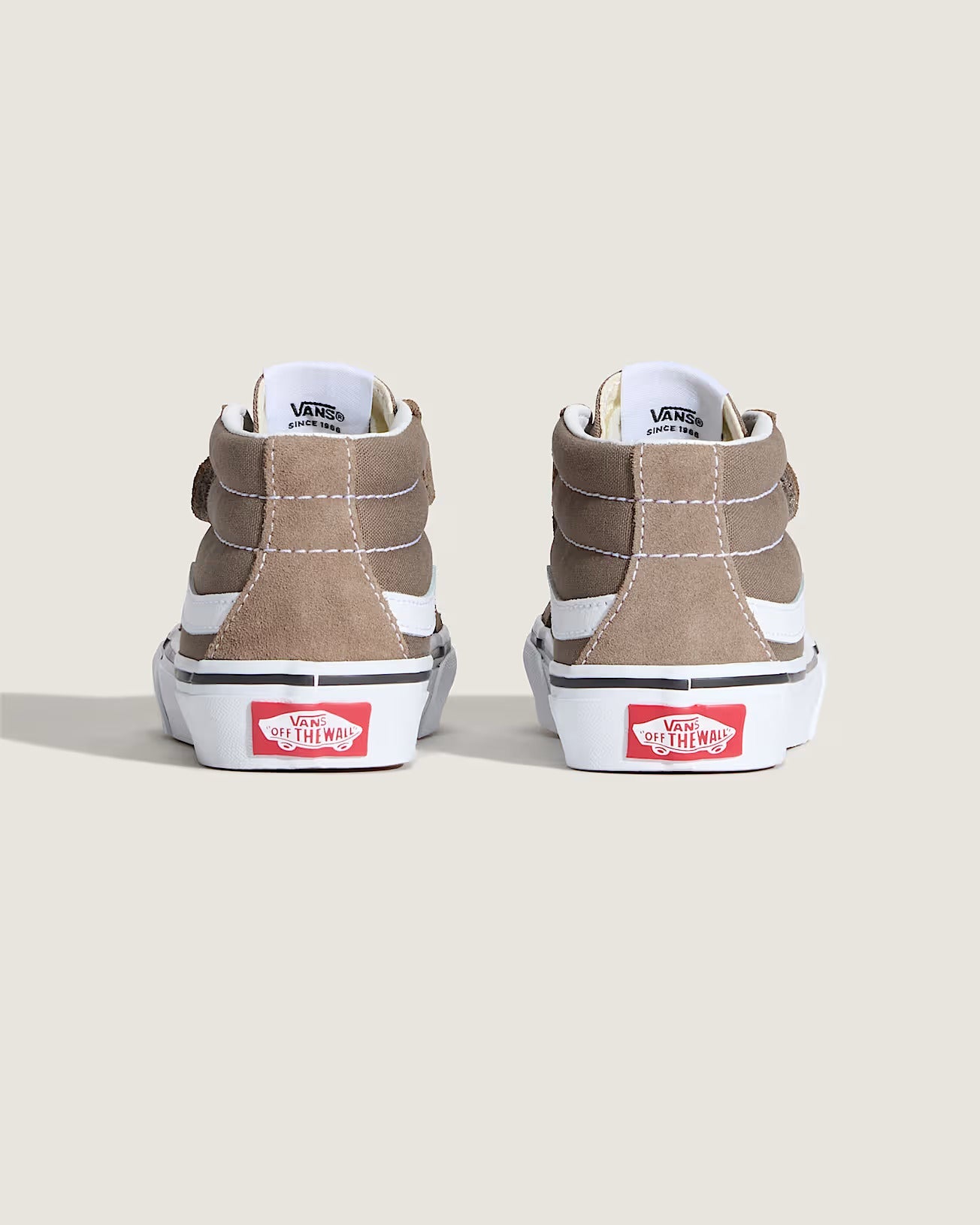 Inspired by the legendary Vans mid-top, the Kids' Sk8-Mid V brings the best of both worlds together with a familiar Sk8-Hi aesthetic, classic mid-top silhouette, and hook-and-loop closures that provide a secure fit without the fuss. Strap em' on and make the day your own.
