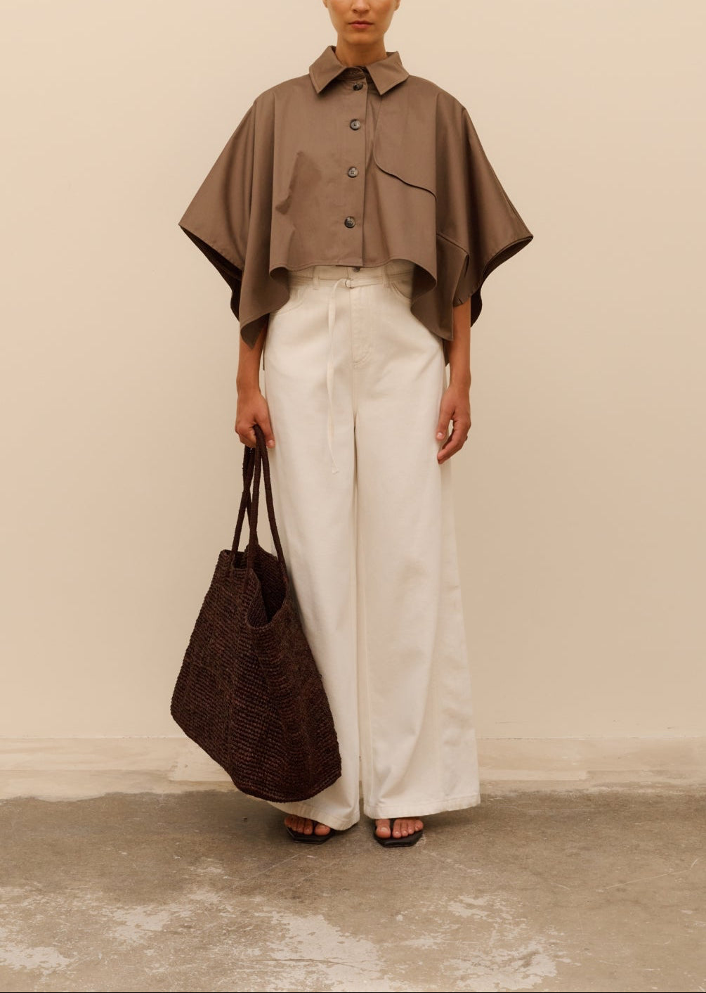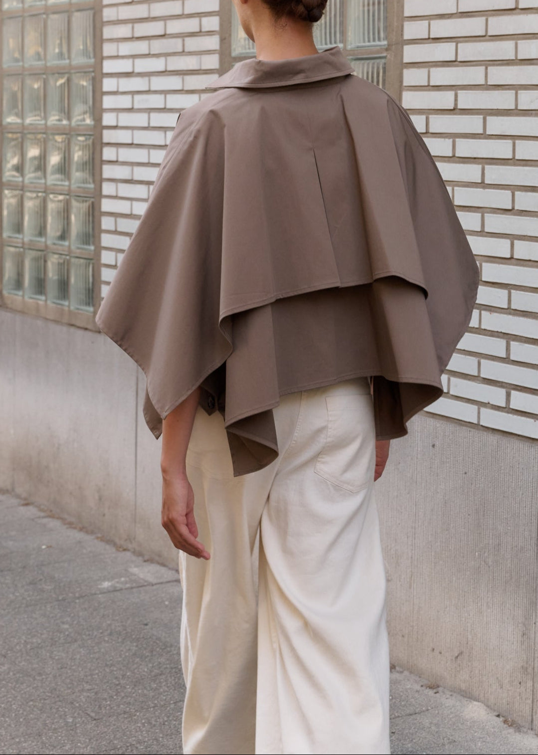 A beautifully designed cropped trench coat crafted from a soft cotton blend with a hint of stretch for comfort and structure. The wide sleeves add a modern, sculptural touch, giving this timeless silhouette a fresh and elevated feel.