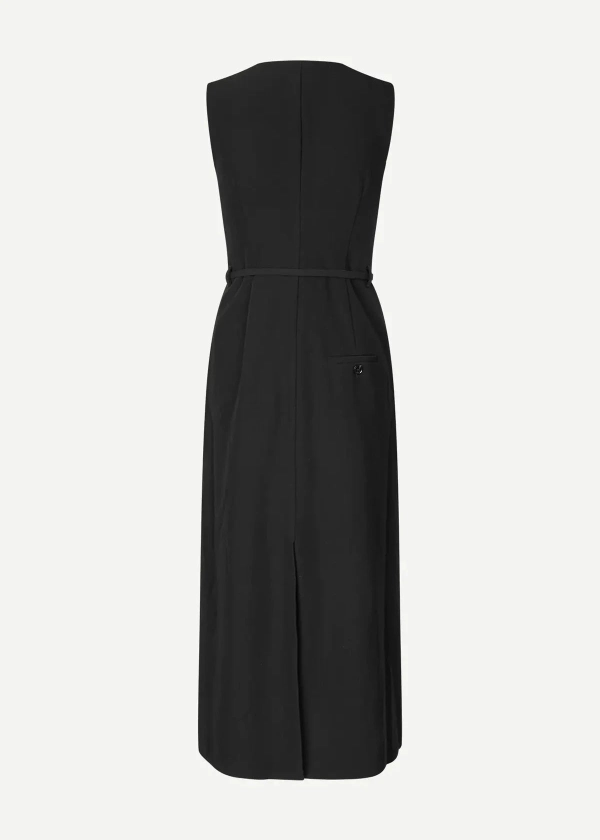 Midi dress with a regular fit. Button closure on the front. Round neck. Single buttoned welt pocket on the back. Belt loops and detachable belt at the waist. Fully lined. Main material made from an elastic blend including recycled polyester.