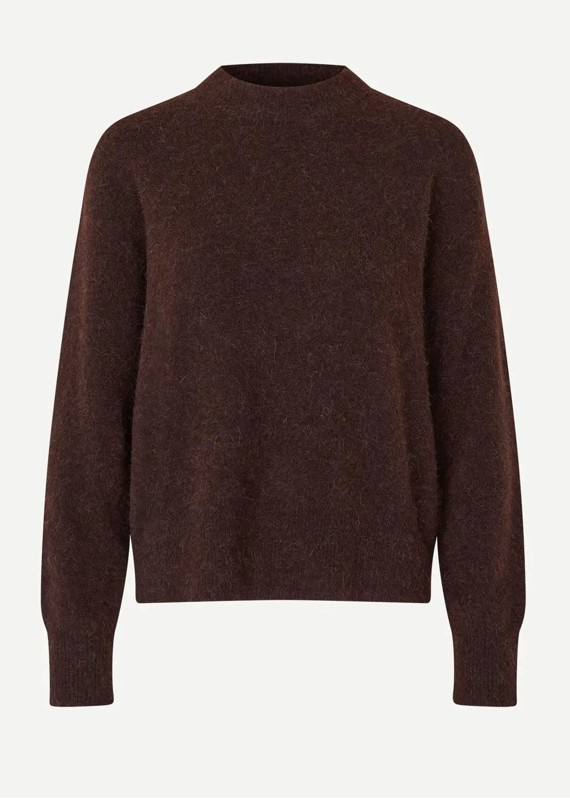 Sweater with a regular fit and dropped shoulders. Rib-knitted crewneck collar, cuffs, and hem. Main material made from an elastic blend with wool and alpaca wool.