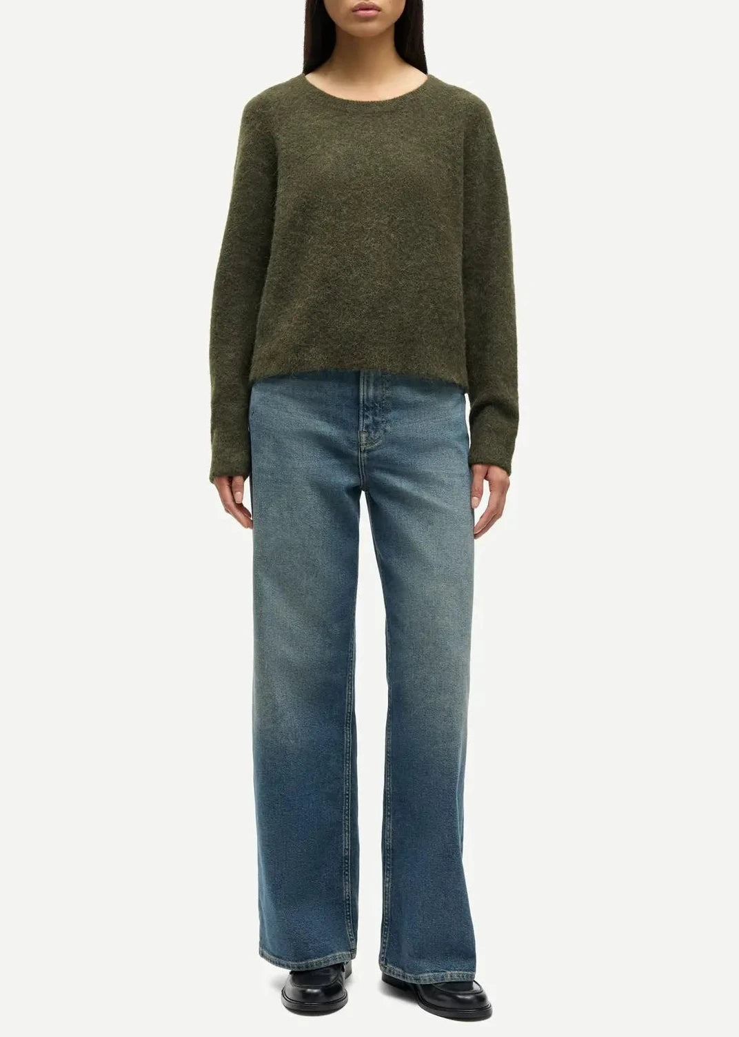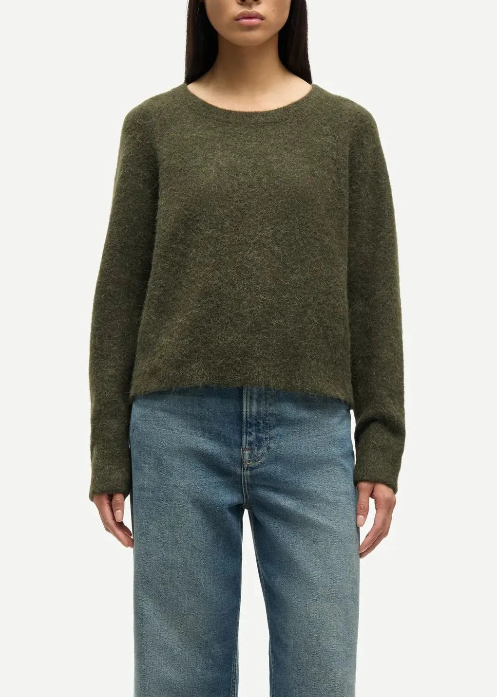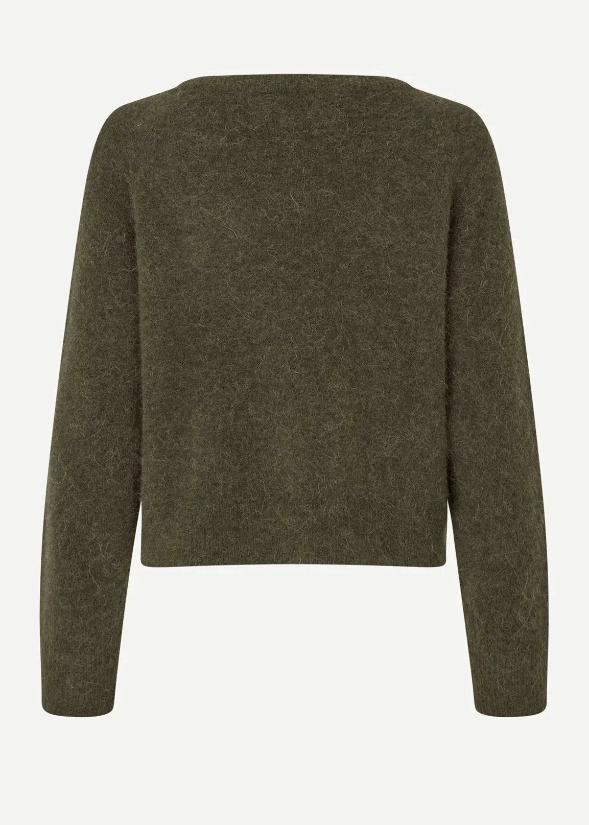 Sweater with a regular fit and dropped shoulders. Rib-knitted crewneck collar, cuffs, and hem. Main material made from an elastic blend with wool and alpaca wool.