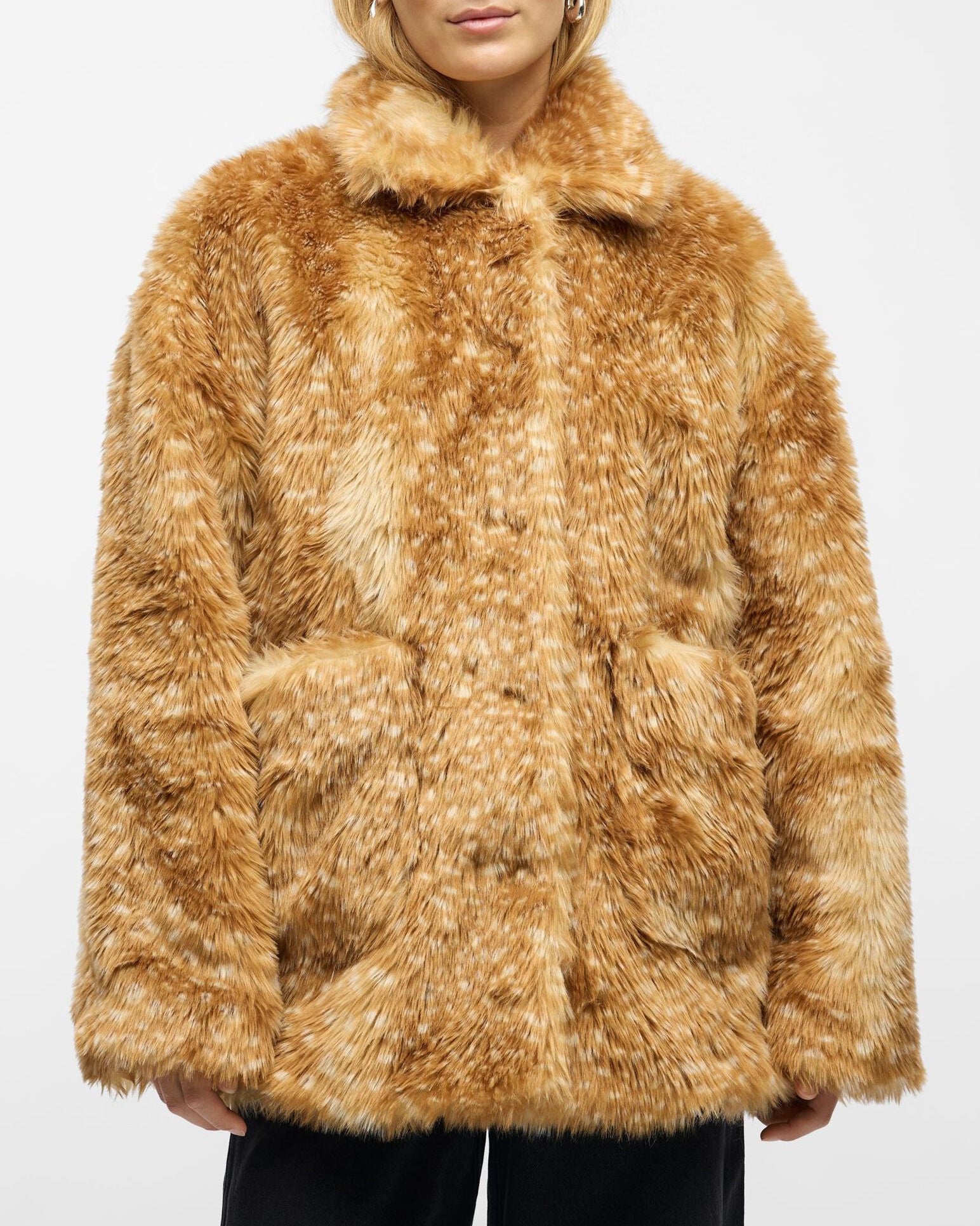 Wrap yourself in soft warmth with this faux fur coat featuring a subtle deer-print texture. Its relaxed, slightly oversized cut, Italian collar and dropped shoulders give it a modern yet timeless look. Fully lined for extra comfort, it’s the perfect piece to elevate any winter outfit — from denim to dresses.