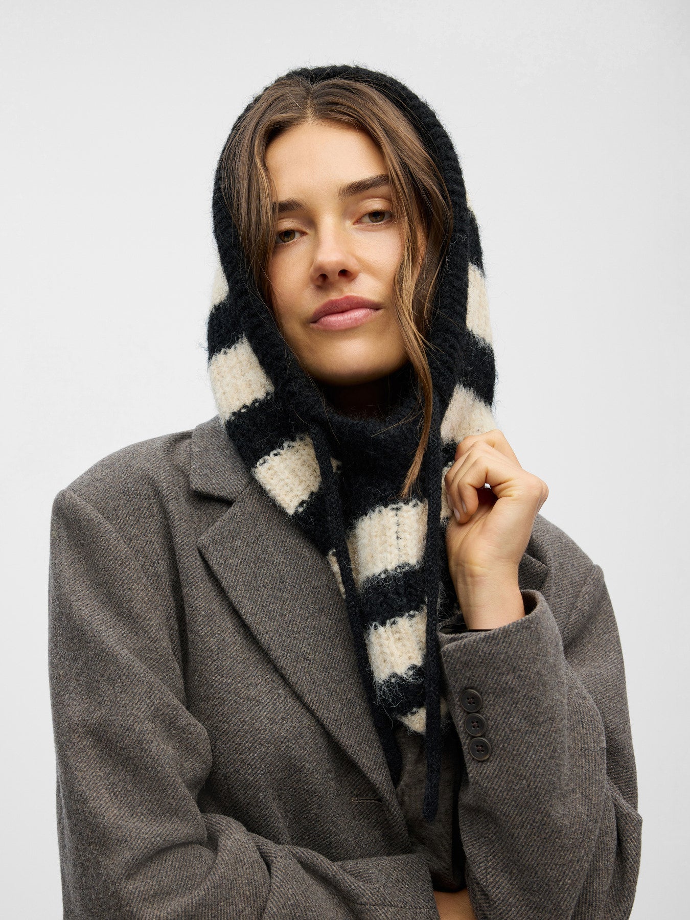 OBJMILU KNIT BALACLAVA | BLACK STRIPES SANDSHELL