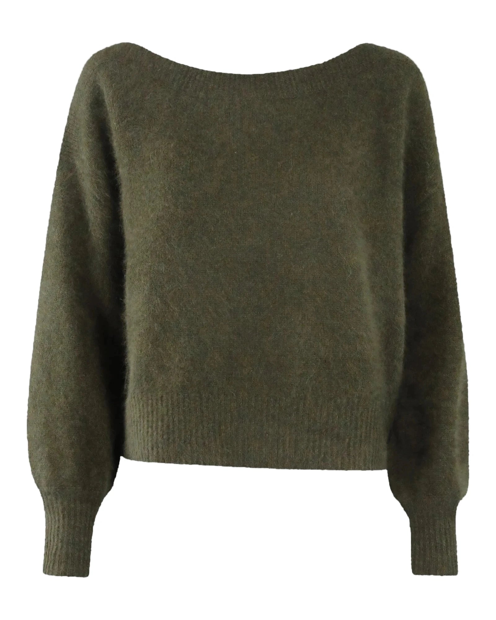 Malou is a raccoon sweater with a boat neck, dropped shoulder and long sleeves.It features a rib along the neckline, as well as along the shoulder seam, and a slightly wider rib at the hem and sleeve cuffs. Malou has a regular fit and is slightly cropped.