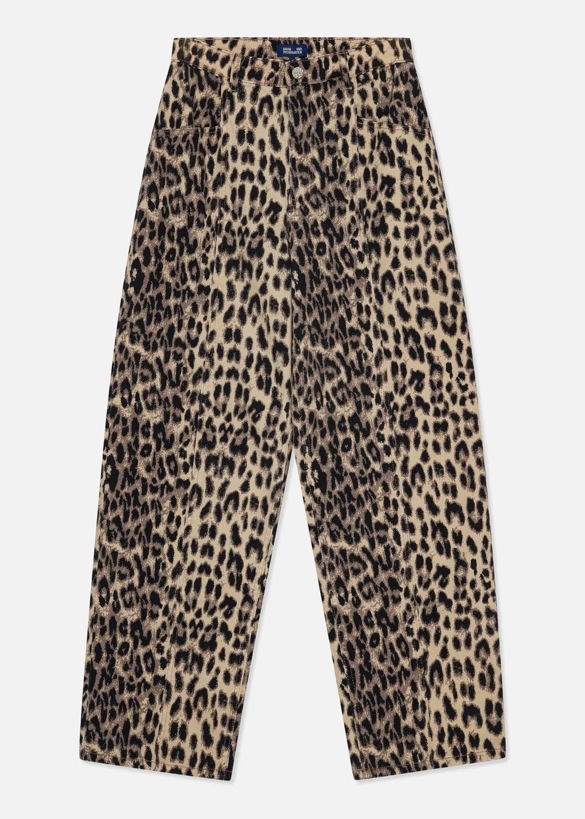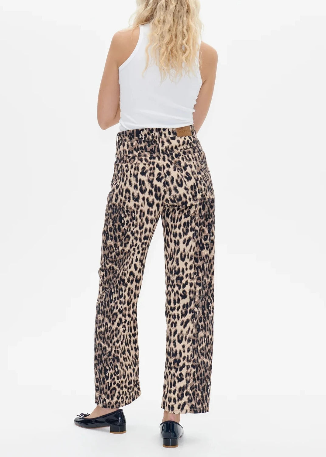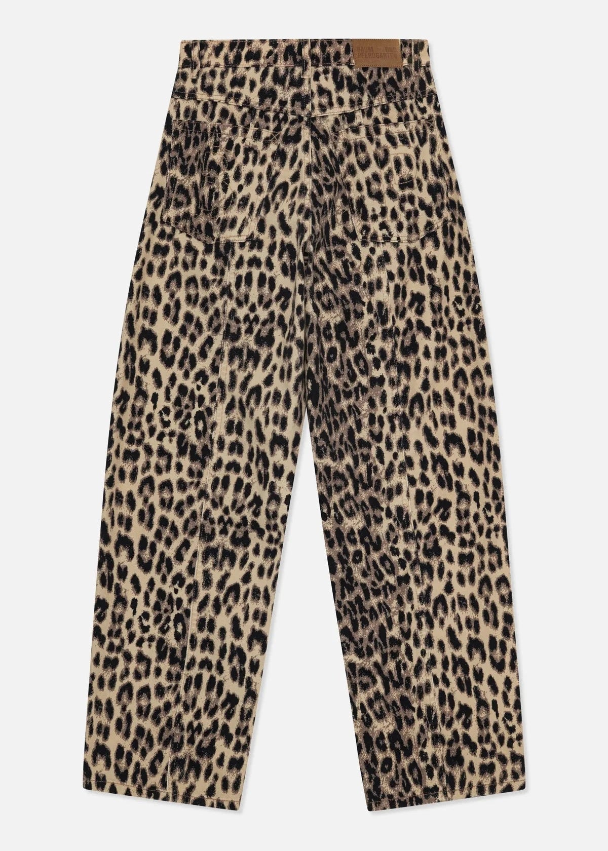 The Nara Jeans are a leopard printed denim jeans. They are designed in a loose fit with a high waist, wide legs and a visible seam down the front and back. Style it with one of our BP tops or t-shirts.